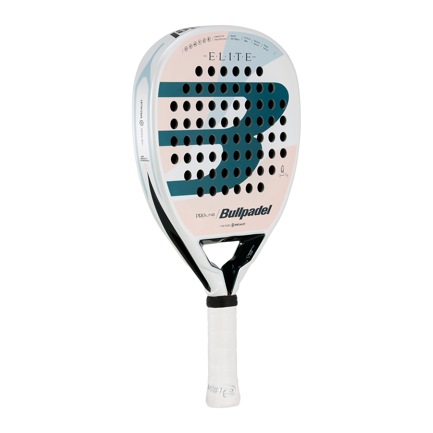 De Bullpadel Elite W 25 zit vol met geavanceerde technologieën om je spel te verbeteren. De ELITE CORE met zijn omgekeerde driehoekige geometrie en versterkte armen zorgt voor grotere stabiliteit en minder torsie bij balimpact, wat resulteert in superieure controle en een gevoel van zekerheid bij elke slag. De AIR REACT CHANNEL technologie vermindert de luchtweerstand in het hart van de racket, wat de rackets wendbaarder en lichter maakt en resulteert in hogere versnelling en snellere, effectievere slagen. Dit technologiepakket maakt de Bullpadel Elite W 25 een marktleider in aerodynamica en structurele integriteit.